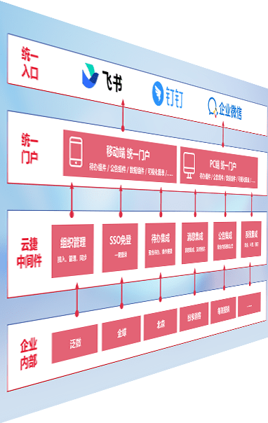 对协作平台提供支持服务,,支持企业应用与协作平台对接,,,包含组织同步、、、、消息集成、、待办集成等。。。支持目前主流的协作平台:钉钉、、、企微和飞书。。。